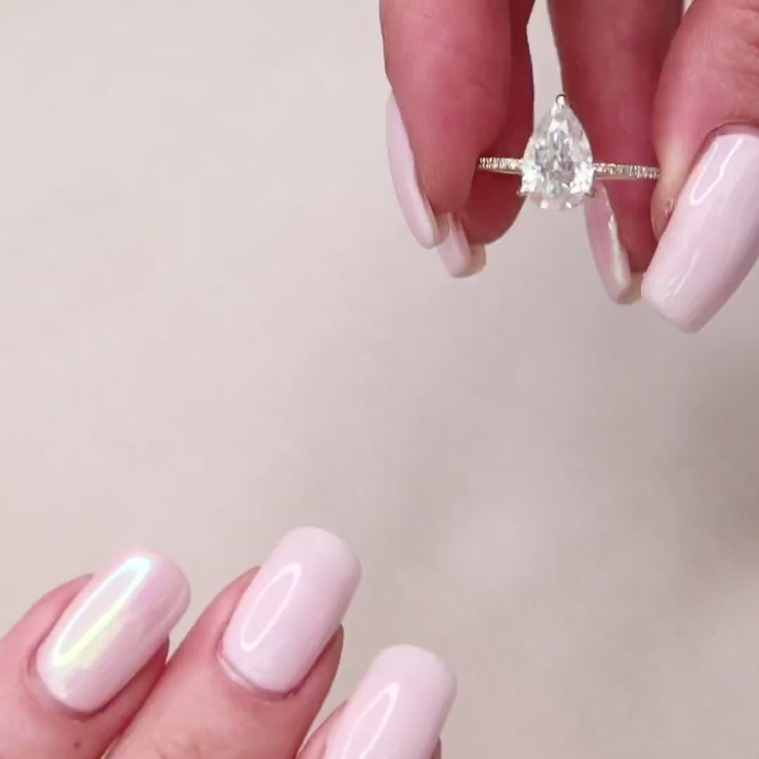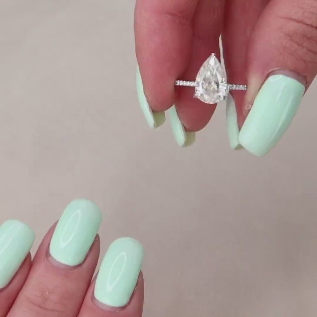 2.0 CT Pear Dainty Pave & Hidden Halo Moissanite Engagement Ring