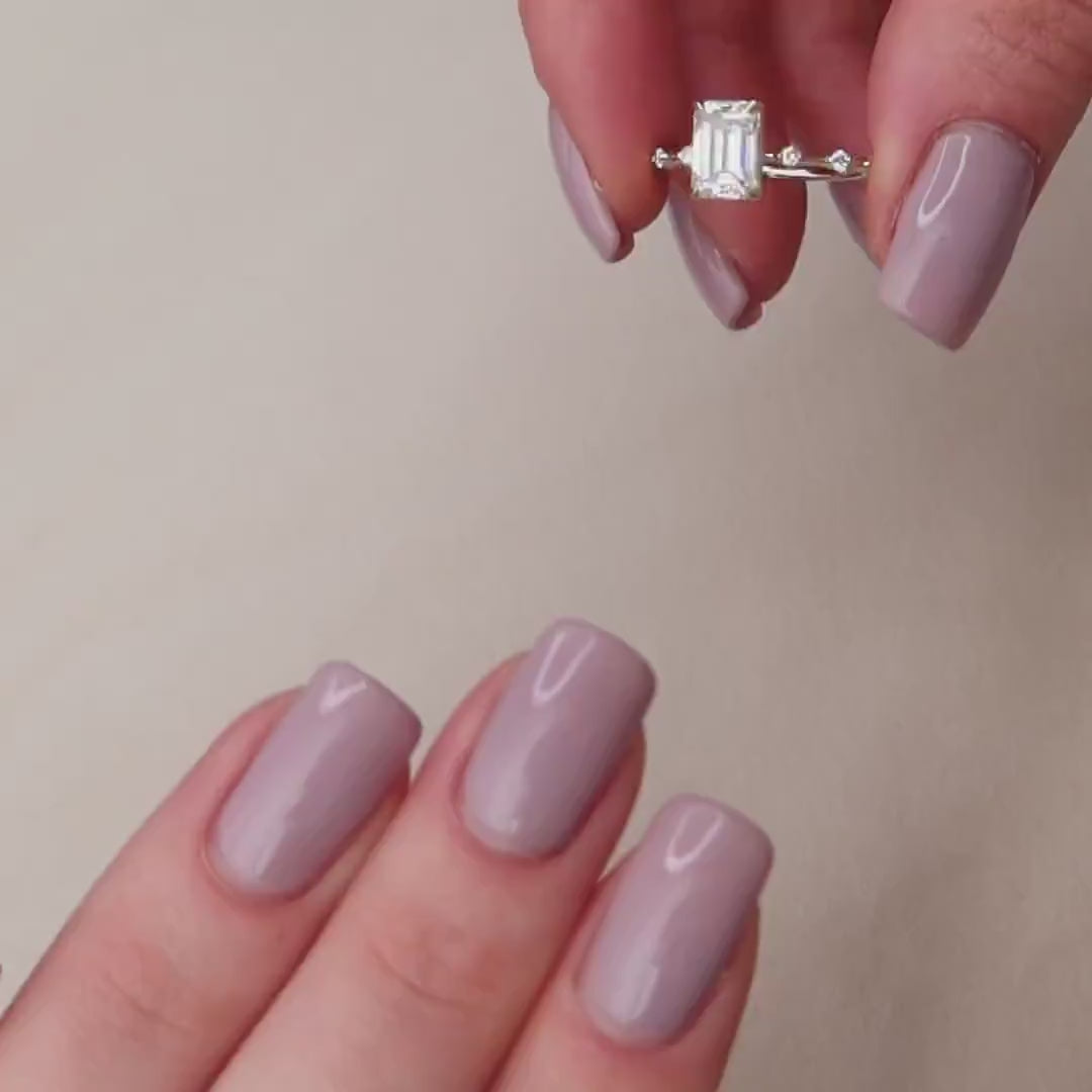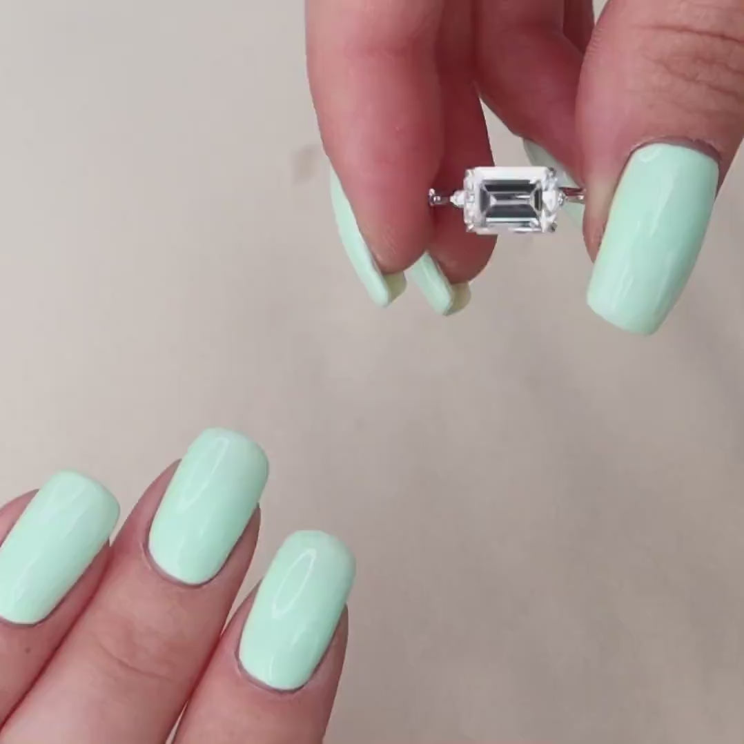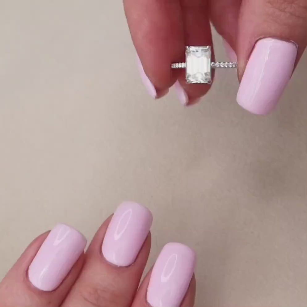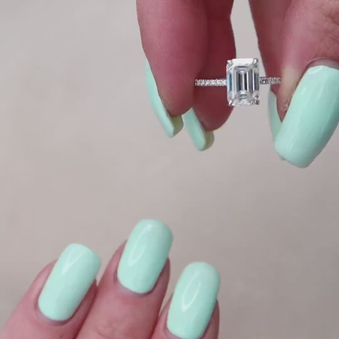3.0 CT Emerald Cut Dainty Pave Moissanite Engagement Ring
