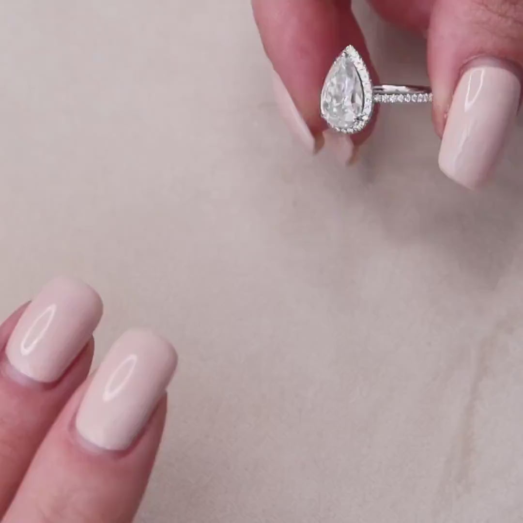 1.50 - 3.50 CT Pear Cut Halo & Pave Moissanite Engagement Ring