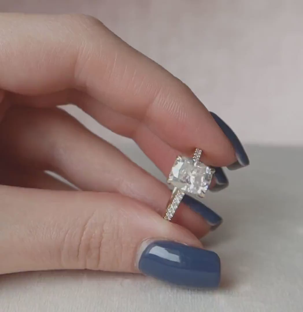 2.5 CT Radiant Hidden Halo & Pave Moissanite Engagement Ring