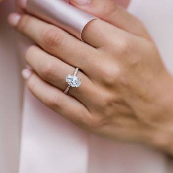 0.70 CT Oval Moissanite Halo & Pave Engagement Ring