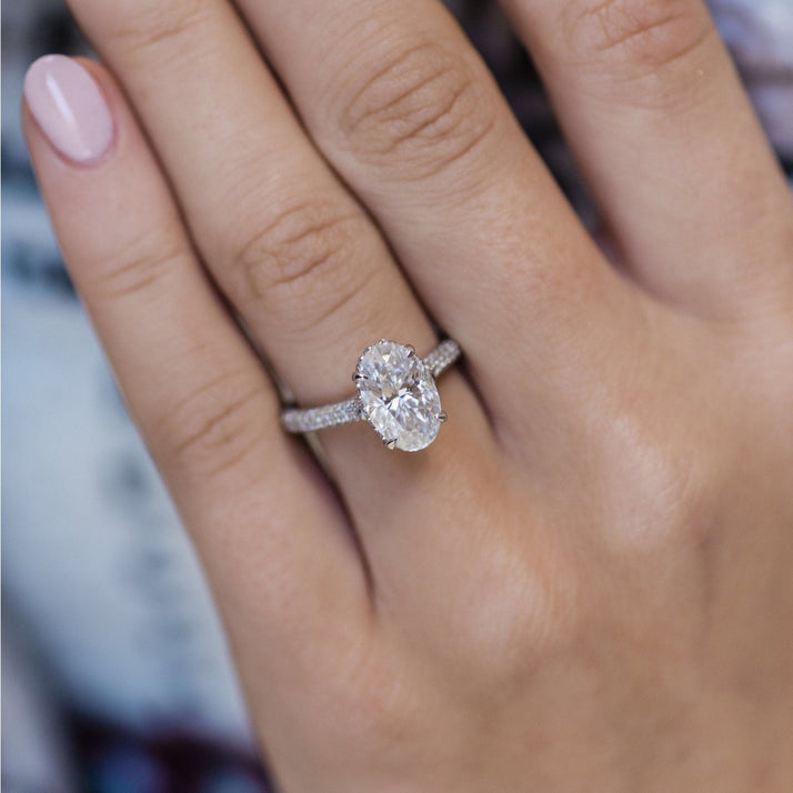 3.0 CT Oval Hidden Halo & Pave Moissanite Engagement Ring