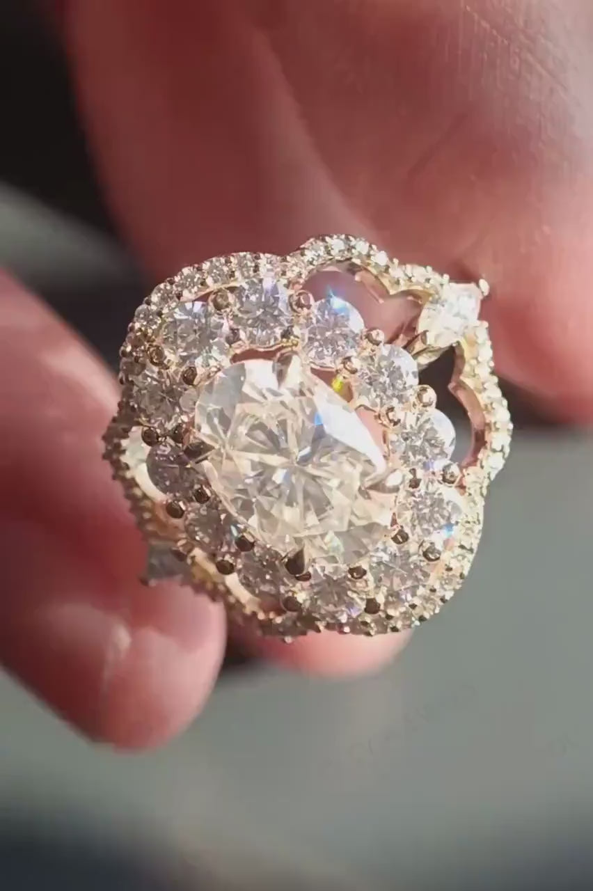 4.0 CT Oval Cluster Moissanite Engagement Ring