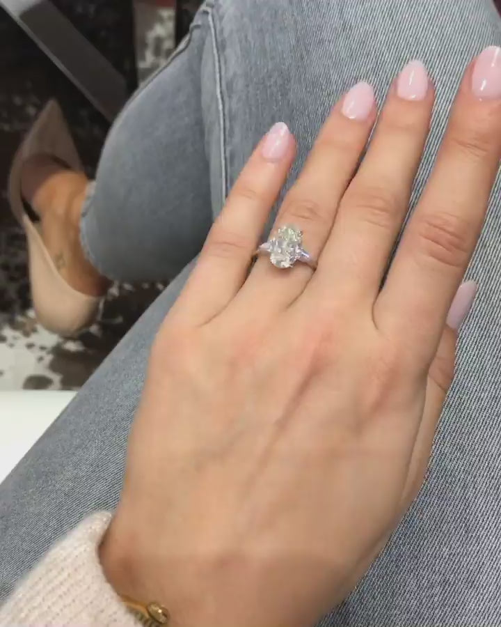 2.20 CT Oval Three Stone Moissanite Engagement Ring