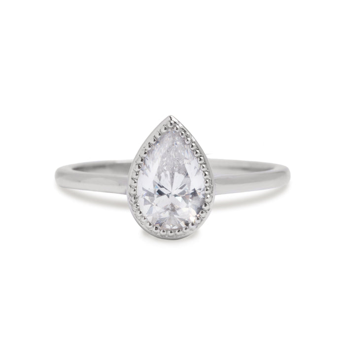 1.0 CT Pear Milgrain Solitaire Style Moissanite Engagement Ring
