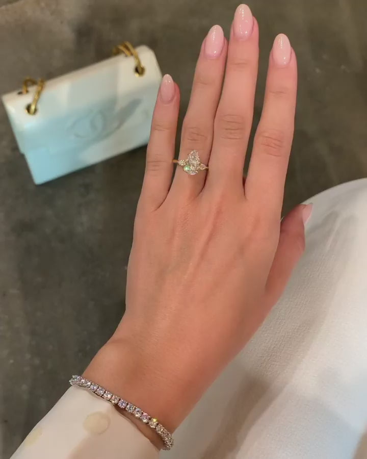 3.0 CT Pear Moissanite Cluster Style Engagement Ring