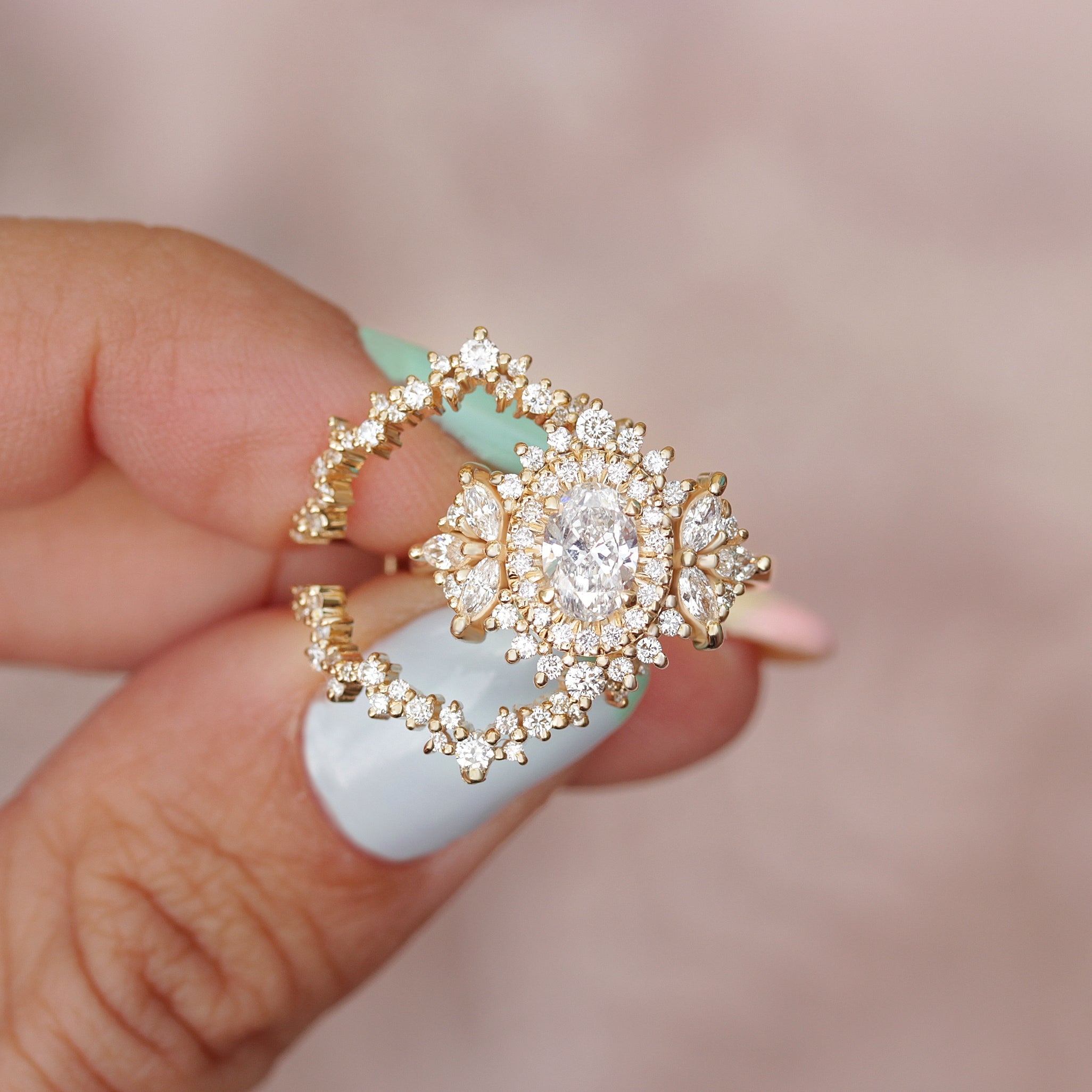 0.70 CT Oval Cut Double Halo Moissanite Bridal Ring Set