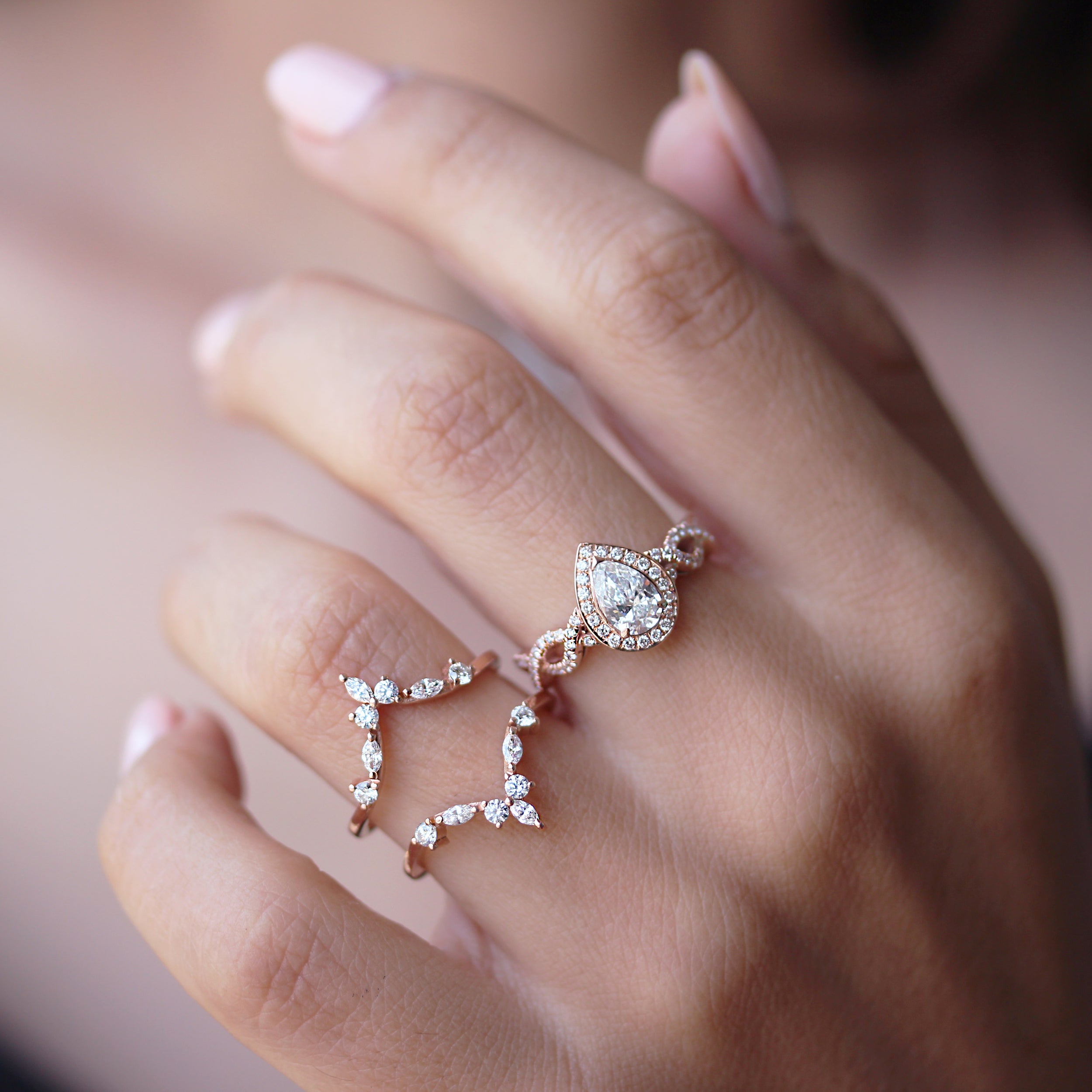 0.70 CT Pear Moissanite Twist Engagement Ring