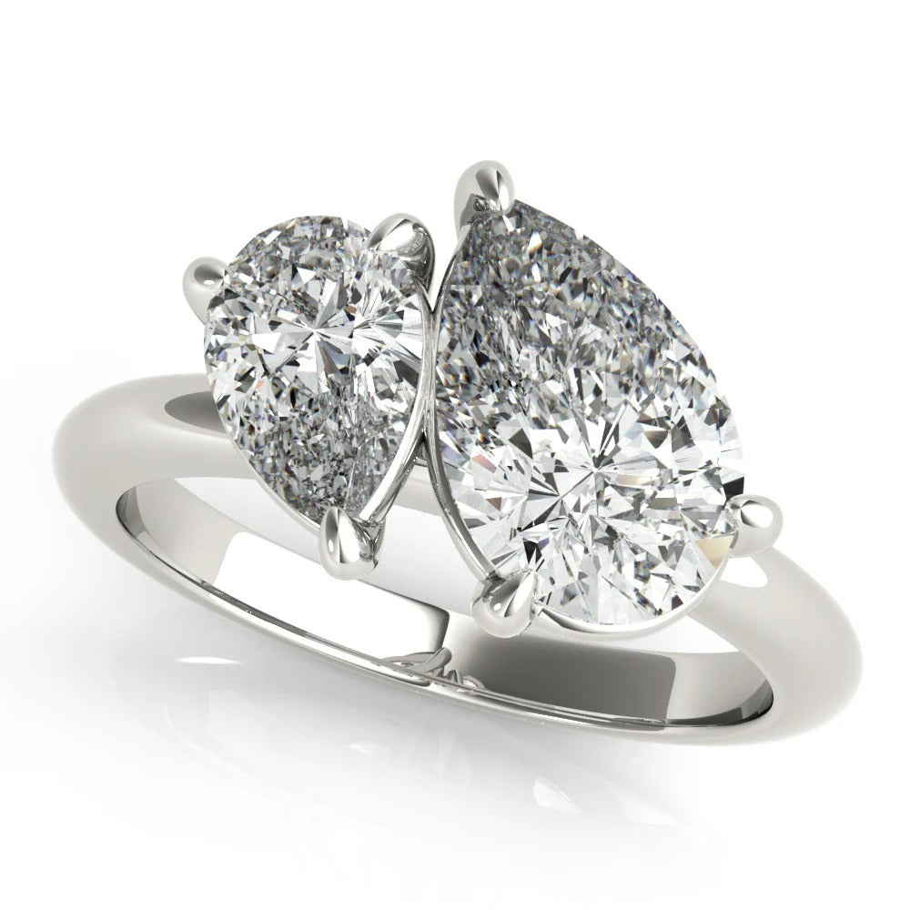 1.0 - 2.0 CT Pear Cut Moissanite Two Stone Engagement Ring