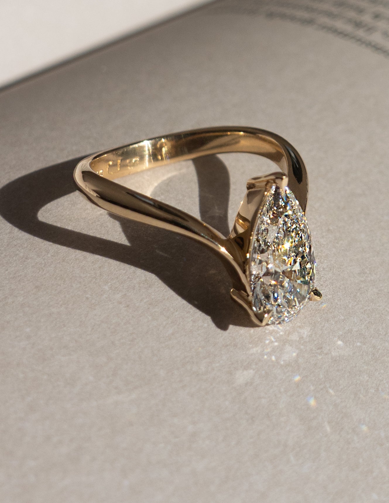 1.0 -3.0 CT Pear Shaped Moissanite Soliatire Style Engagement Ring