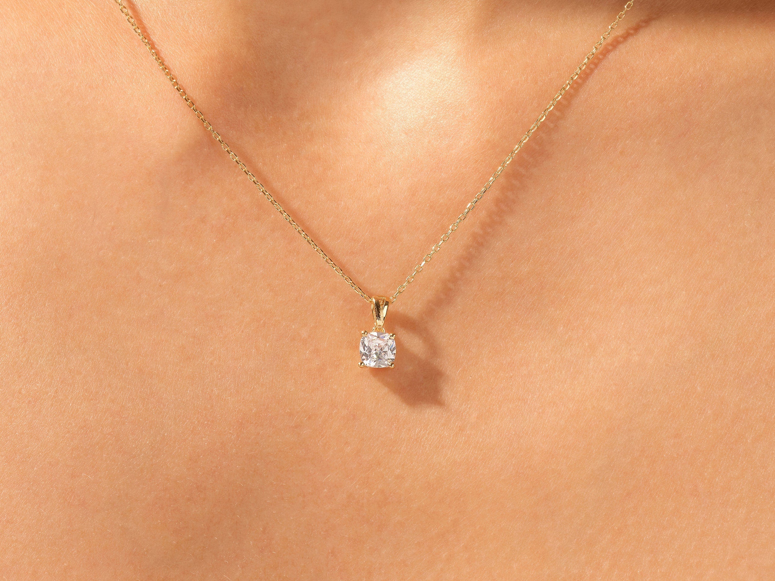 1.0 CT Cushion Moissanite Diamond Solitaire Necklace