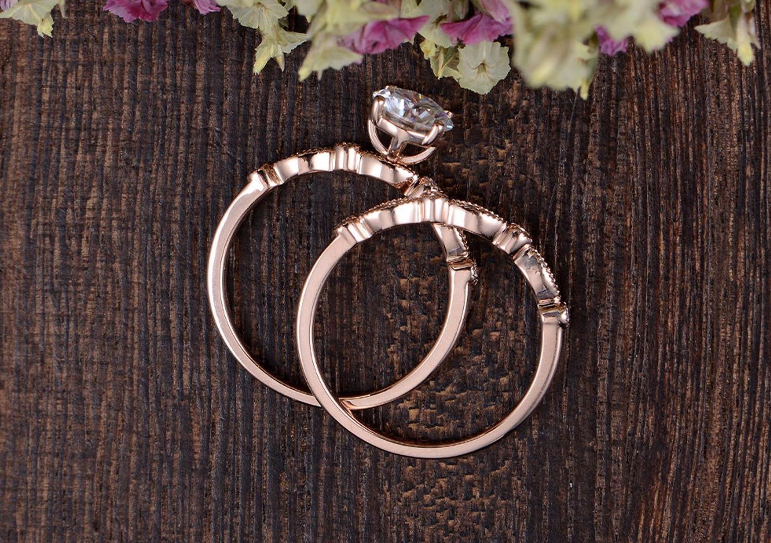 1.0 CT Round Cut Milgrain Style Moissanite Bridal Ring Set
