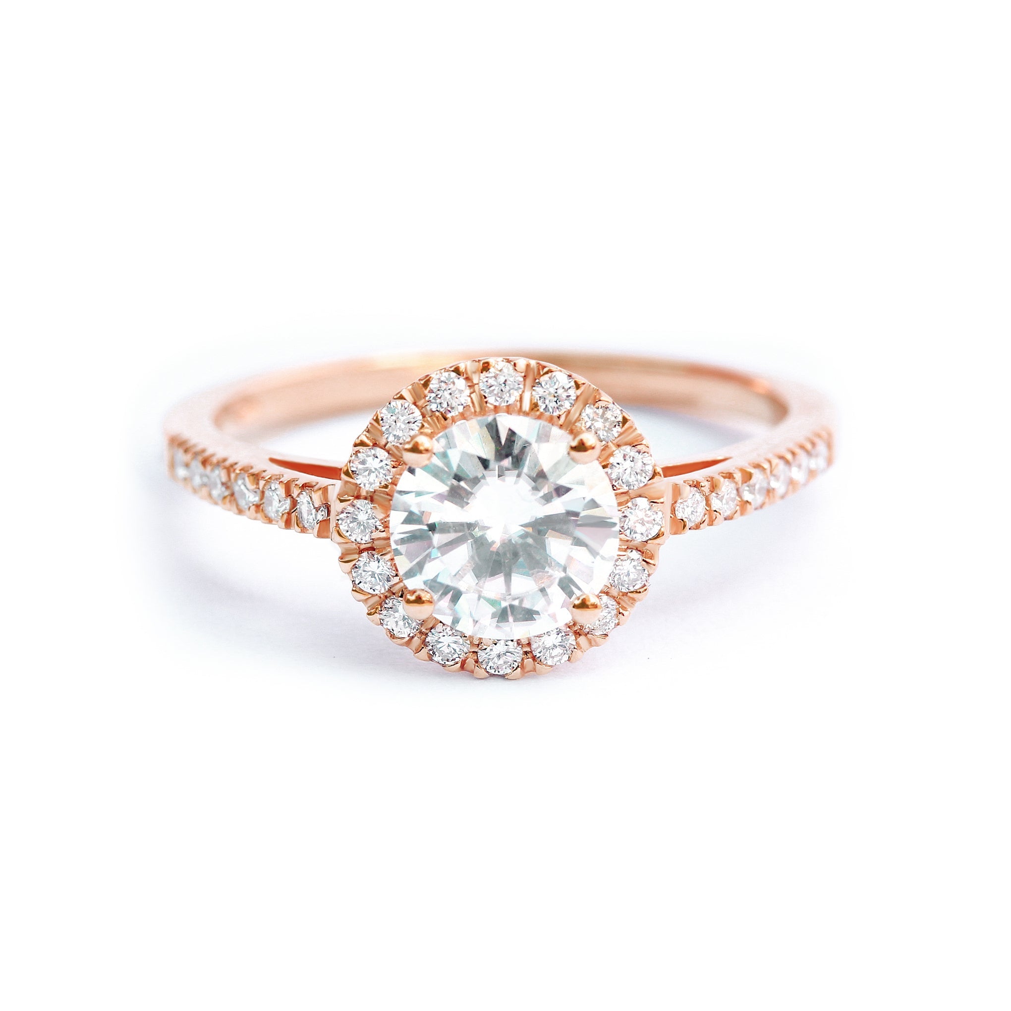 1.0 CT Round Moissanite Halo & Pave Engagement Ring