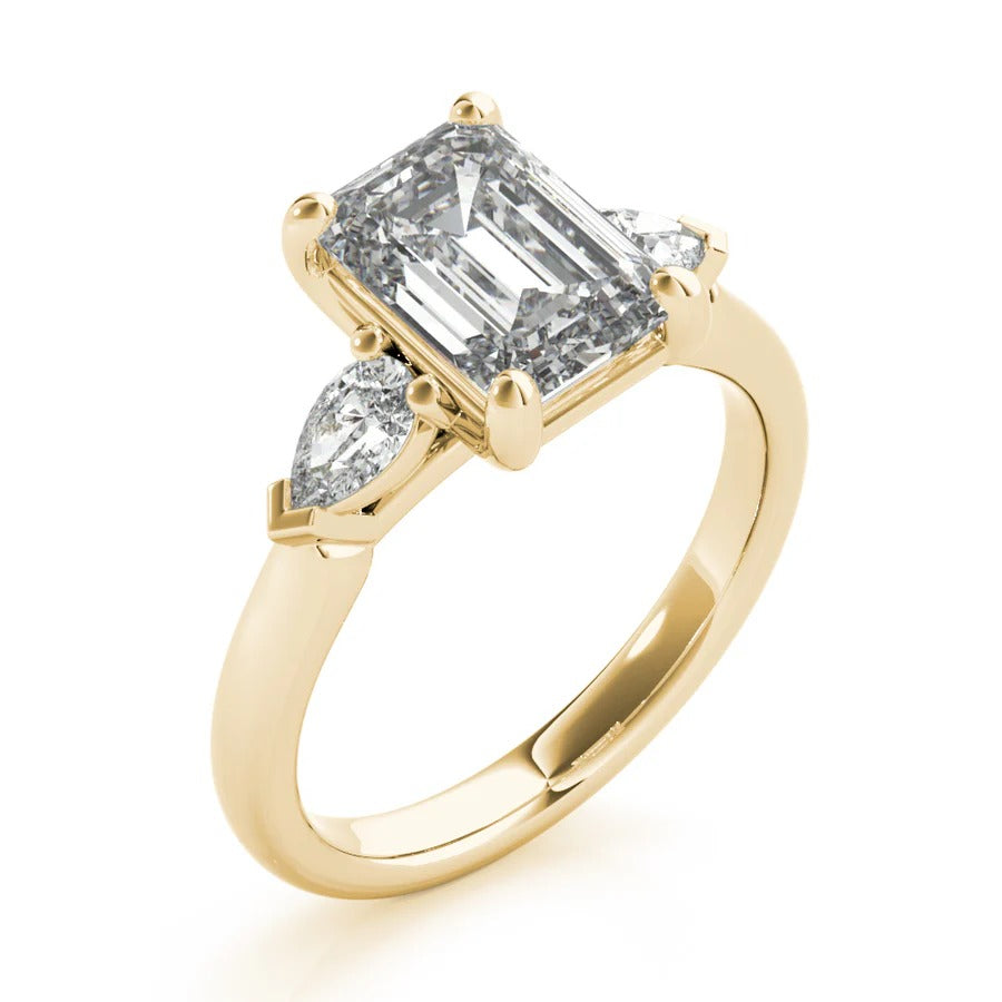 1.5 - 2.5 CT Emerald Moissanite Three Stone Engagement Ring