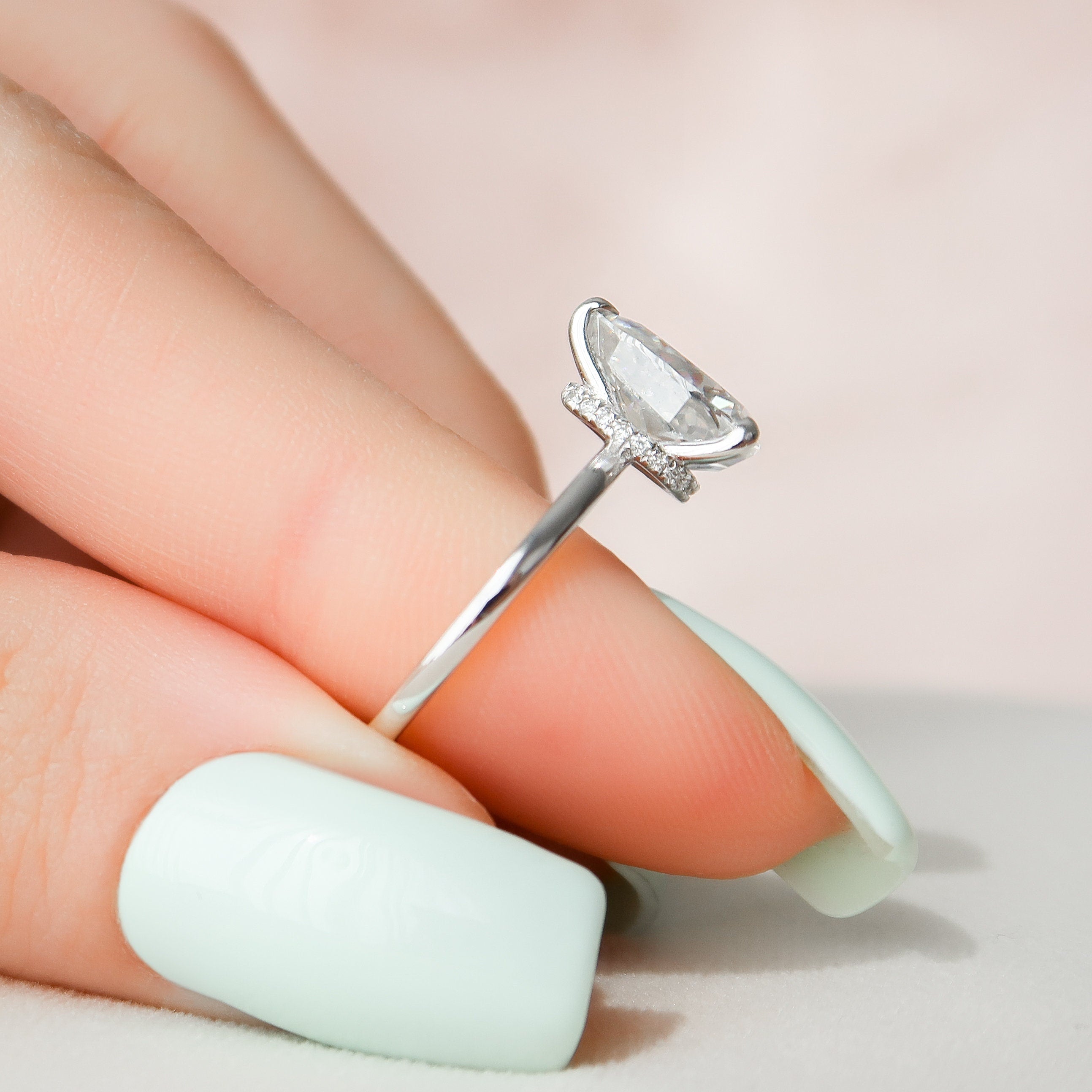 1.50 CT Pear Shaped Moissanite Hidden Halo Engagement Ring