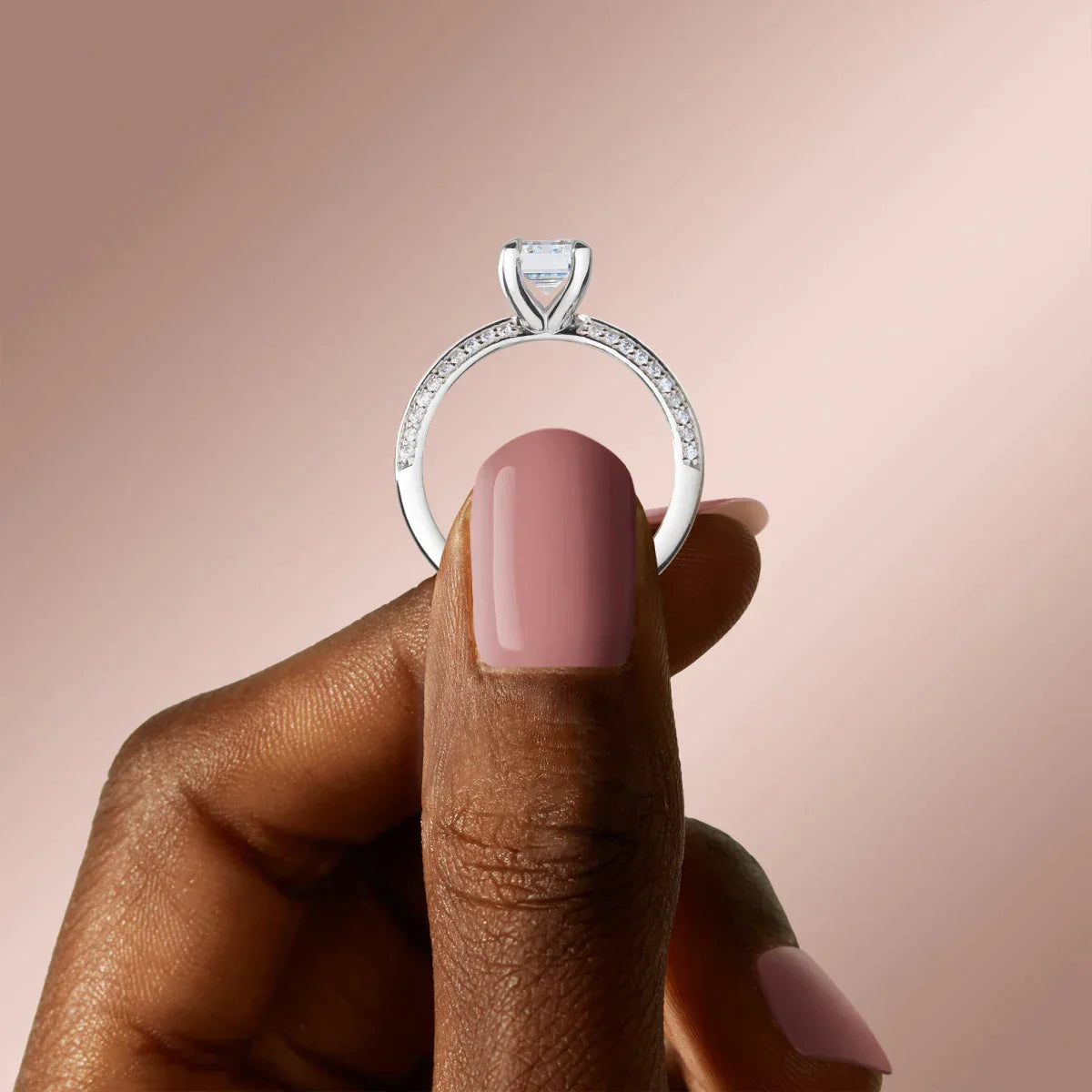 1.60 CT Emerald Solitaire Moissanite Engagement Ring With Pave Setting