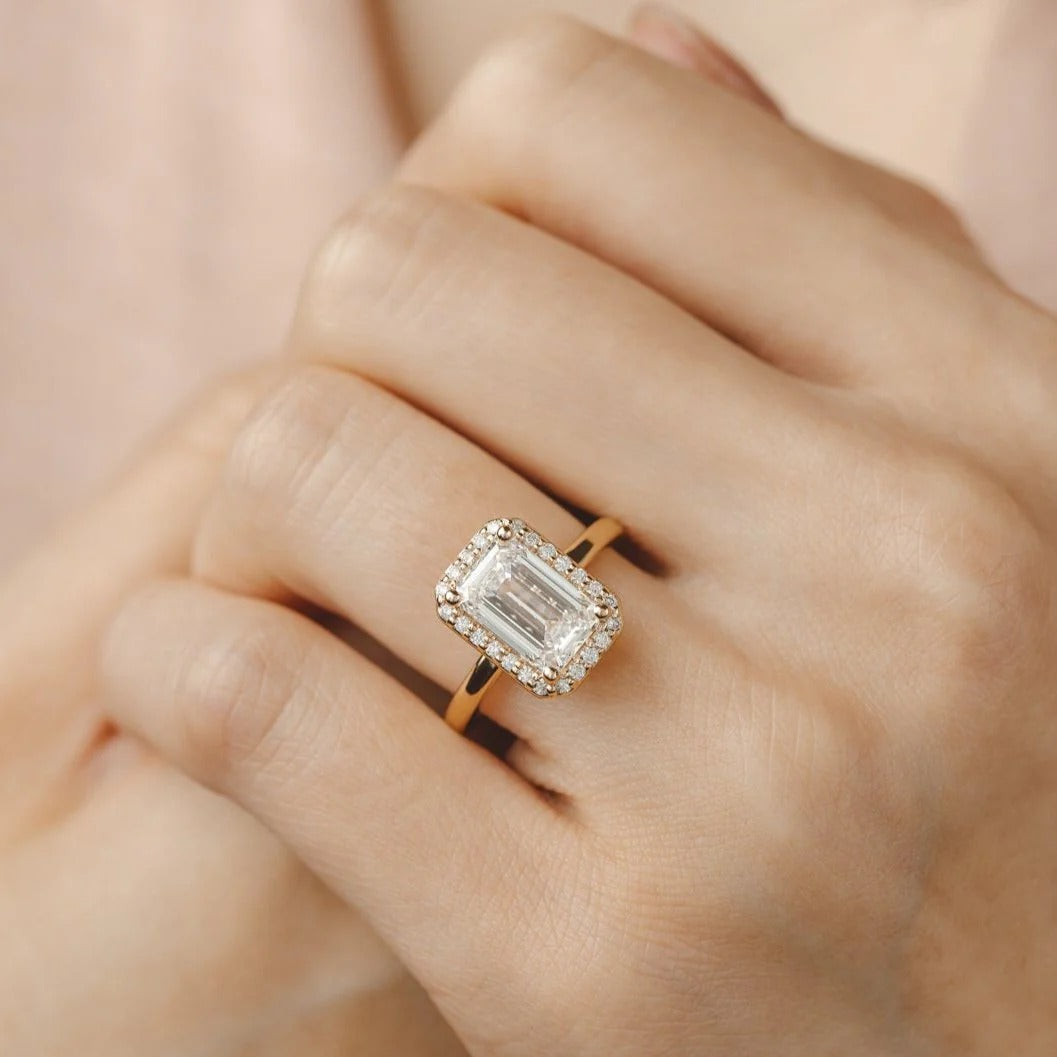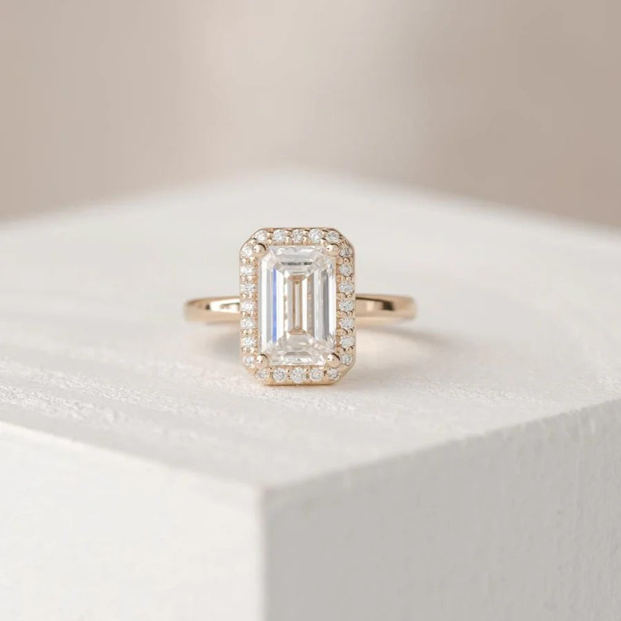 2.0 - 4.0 CT Emerald Moissanite Halo Engagement Ring