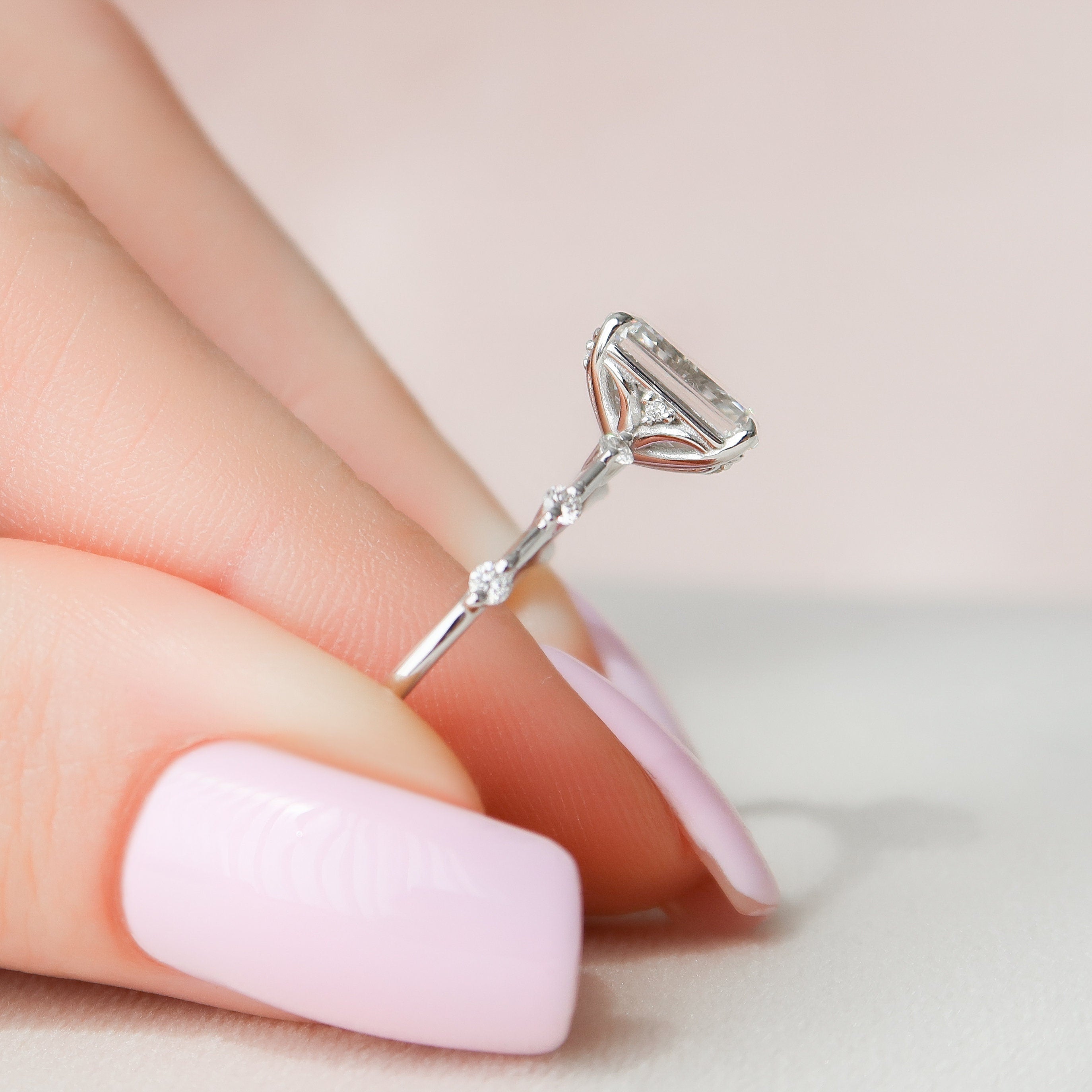 2.5 Ct Emerald Dainty Pave Moissanite Engagement Ring