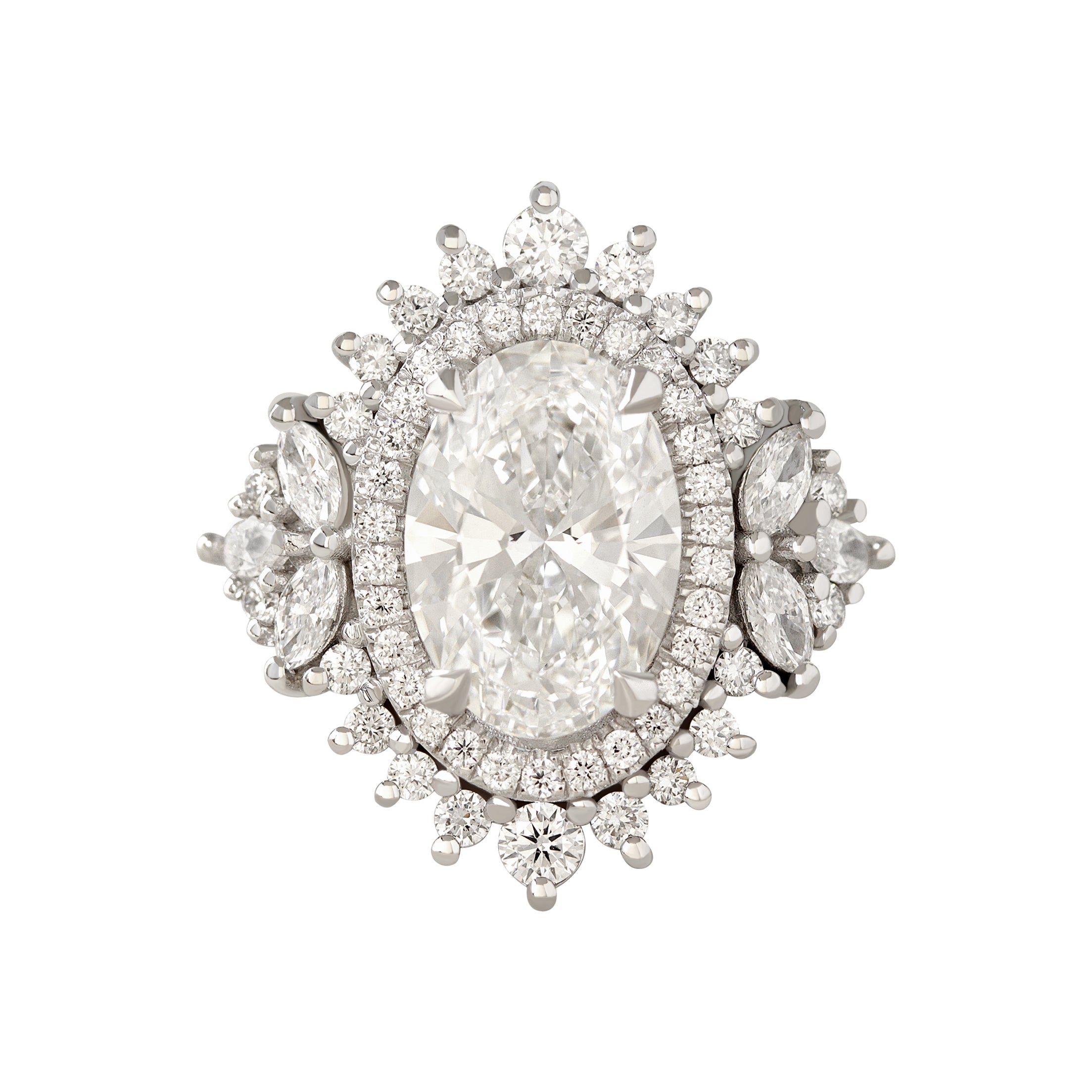 3.0 CT Oval Moissanite Double Halo Engagement Ring
